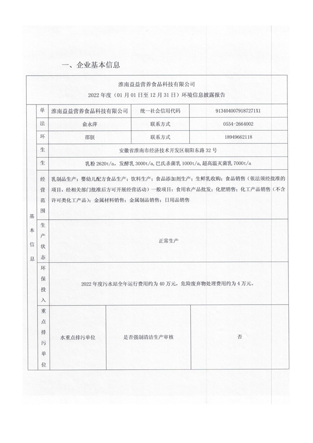 為響應規范企業環境信息依法披露活動,益益乳業現向社會公眾依法披露《2022年度企業環境信息依法披露報告》,報告內容如下: